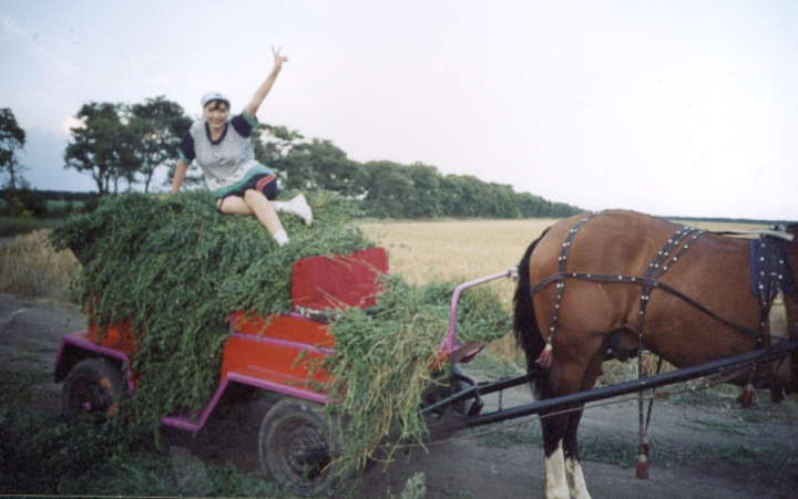 На первой рыси пугала незнакомую девушку на лошади - я пару кругов без рук каталась - хлыст перед собой держала, а управлялись ногами и корпусом. Но потом решила не шокировать народ и продолжила разбираться с взаимодействием рук, корпуса и ног.