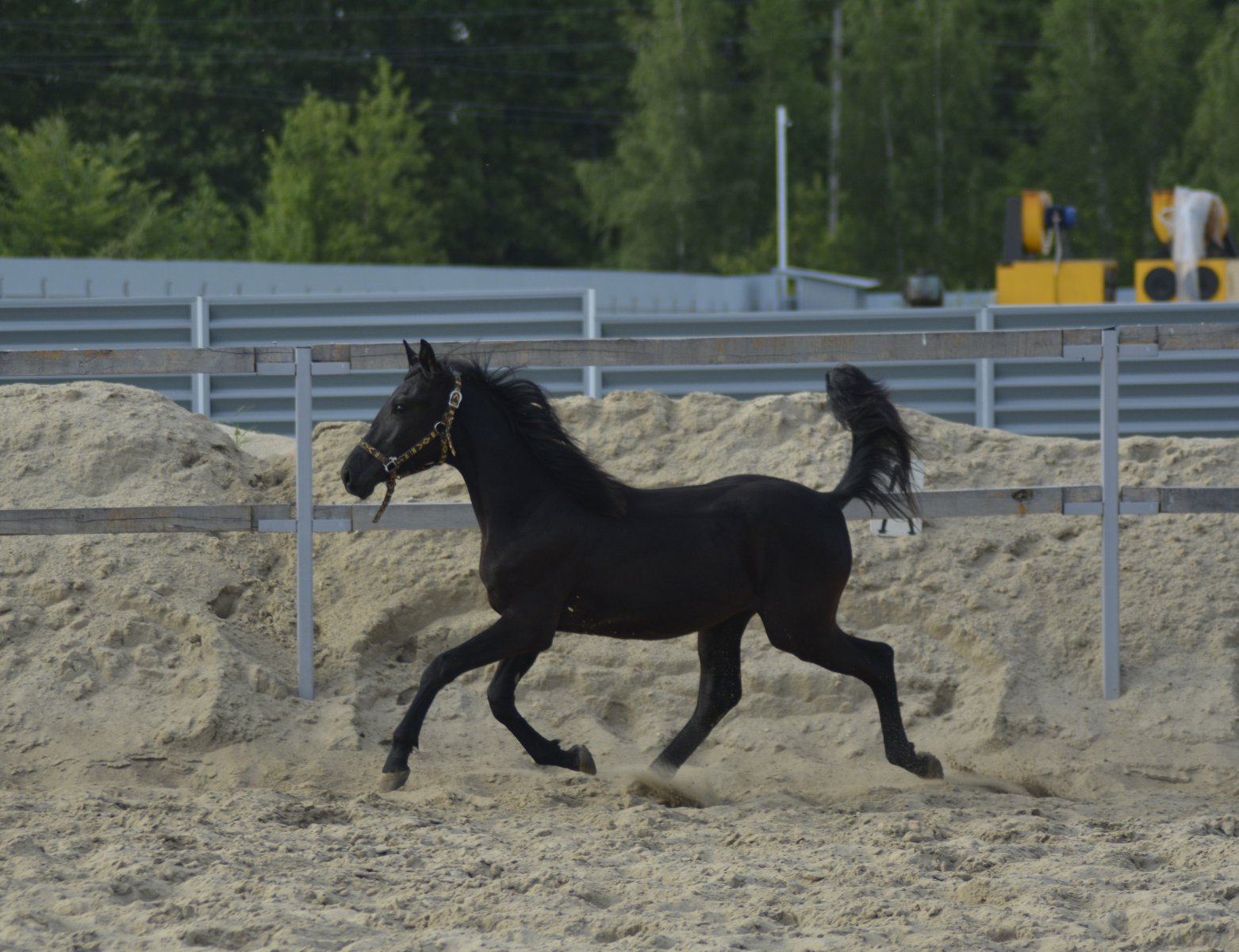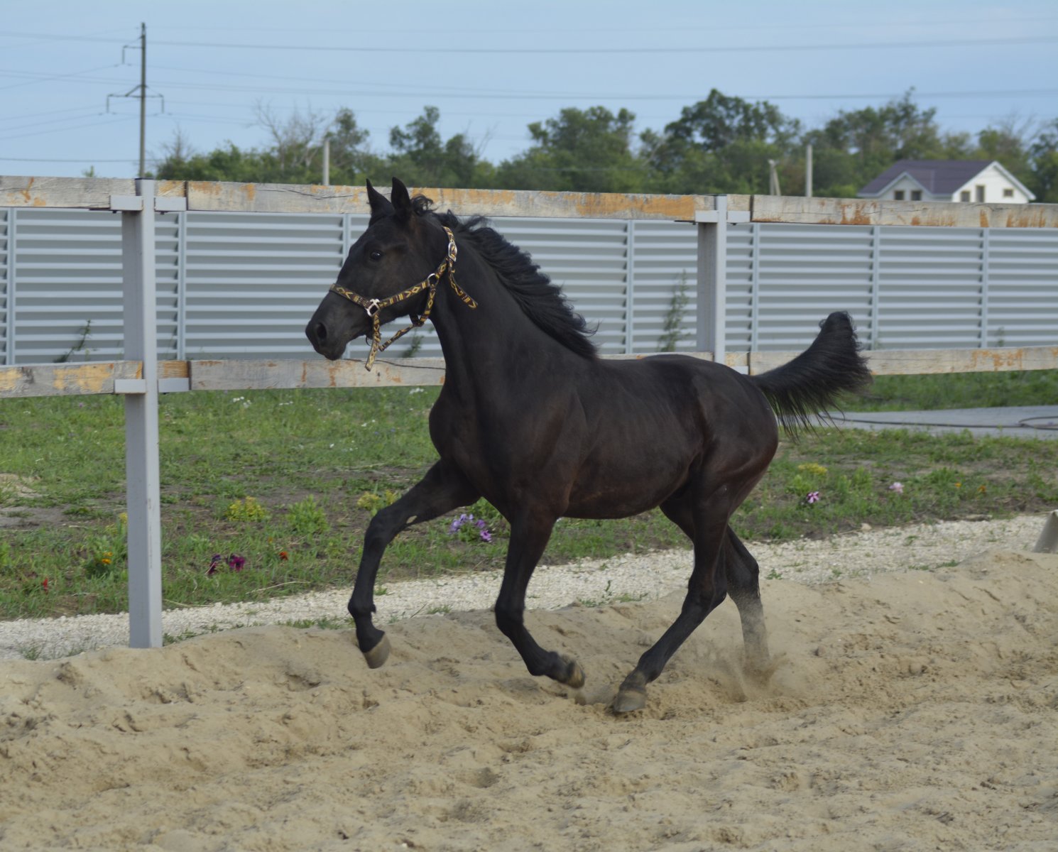 Вороной жеребчик 2023 года ( апрель) . Высота в холке 139-140 см. Спортивная помесь. Активный, смелый парень. Гуляет как на свободе, так и на привязи. Жеребчик для души или в дальнейшем для хобби нагрузок. В спорт не подойдет. Продажа не связана с лошадью.