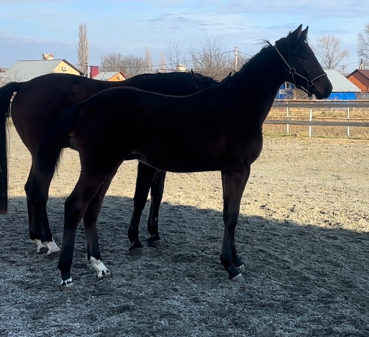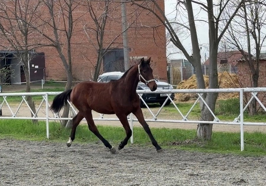 Оповожен, все бытовые манипуляции переносит без проблем. Крупный и костистый, будет высоким и крепким. На круглосуточном выгуле со сверстниками. Не жеребцует, общительный.