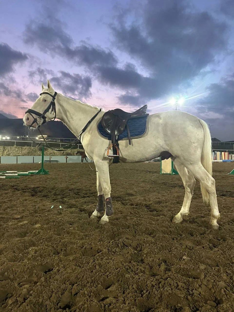 Добрейший, ласковый, ориентирован на человека. К лошадям спокоен, не жеребцует. Заезжен, базово выезжен. Пробовали чуть прыгать - показал сильный, техничный прыжок. В быту беспроблемный, простой.