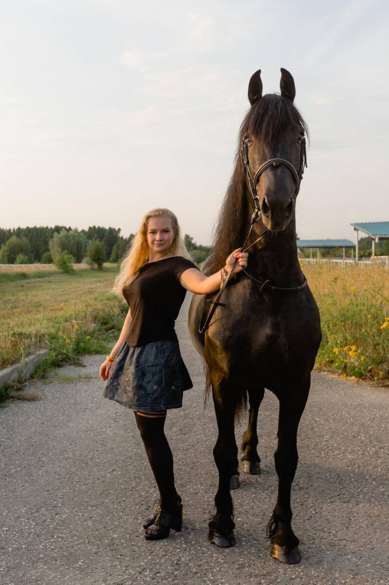 Жеребец фризской породы от титулованных родителей, вороной масти. Импорт из Голландии.