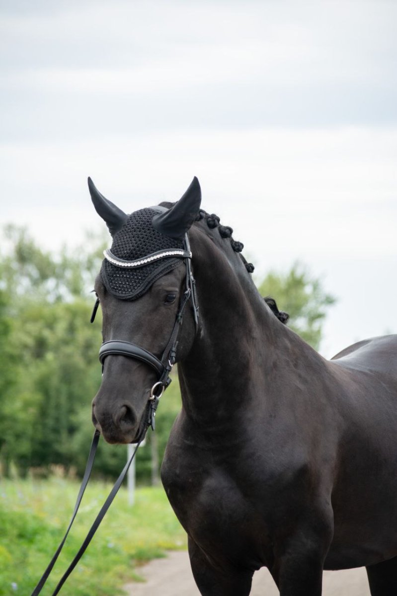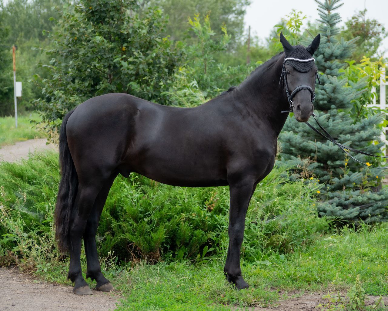 Поставлен корду, работает на кавессоне. Постепенно начинает готовится к заездке. Отличается великолепным характером, в быту справится ребенок. Очень смышленый, легко учится новому.