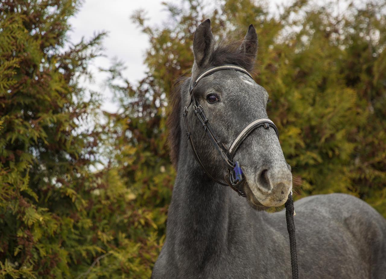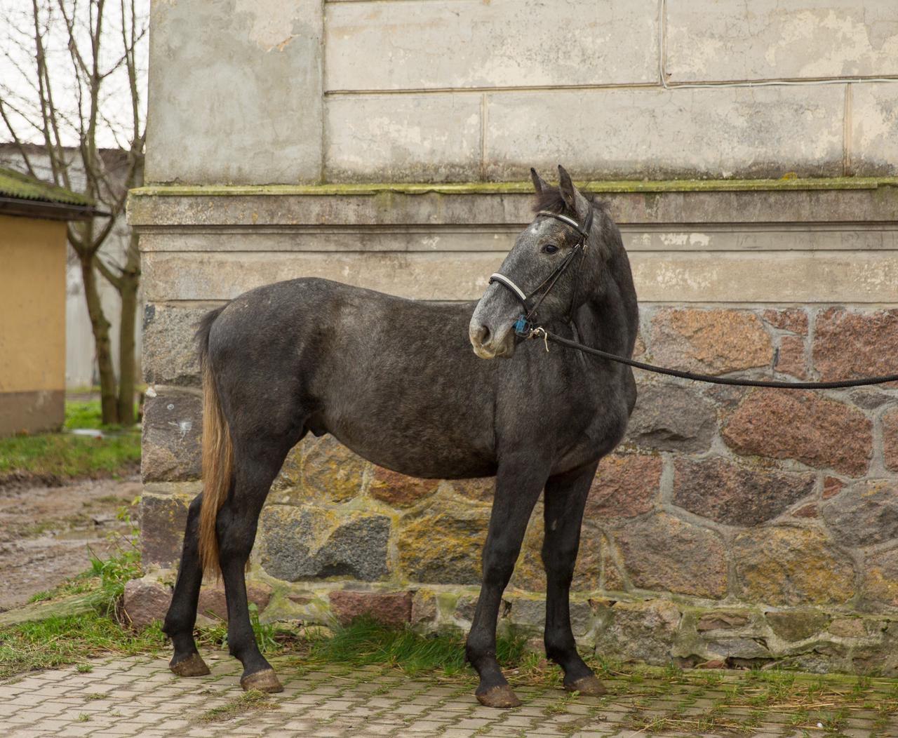 Жеребец полукровной породы (отец - орловской породы, мать - тракененской породы), серой масти.