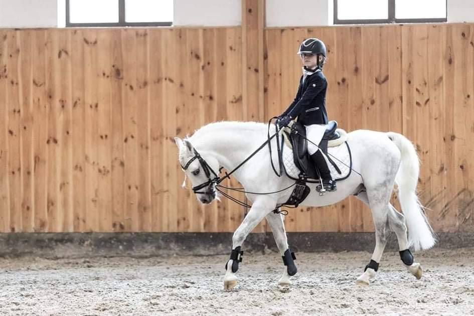 Уровень подготовки: езды для детей-любителей, уступки шенкелю, простые перемены, полупируеты на шагу, плечо внутрь, контргалоп, одиночные барьеры 50-60 см.