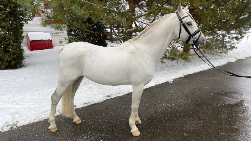 Жеребец уэльский пони, серой масти. Происхождение: Mintfield Aristocrat x Stougjesthoeve Emilia.