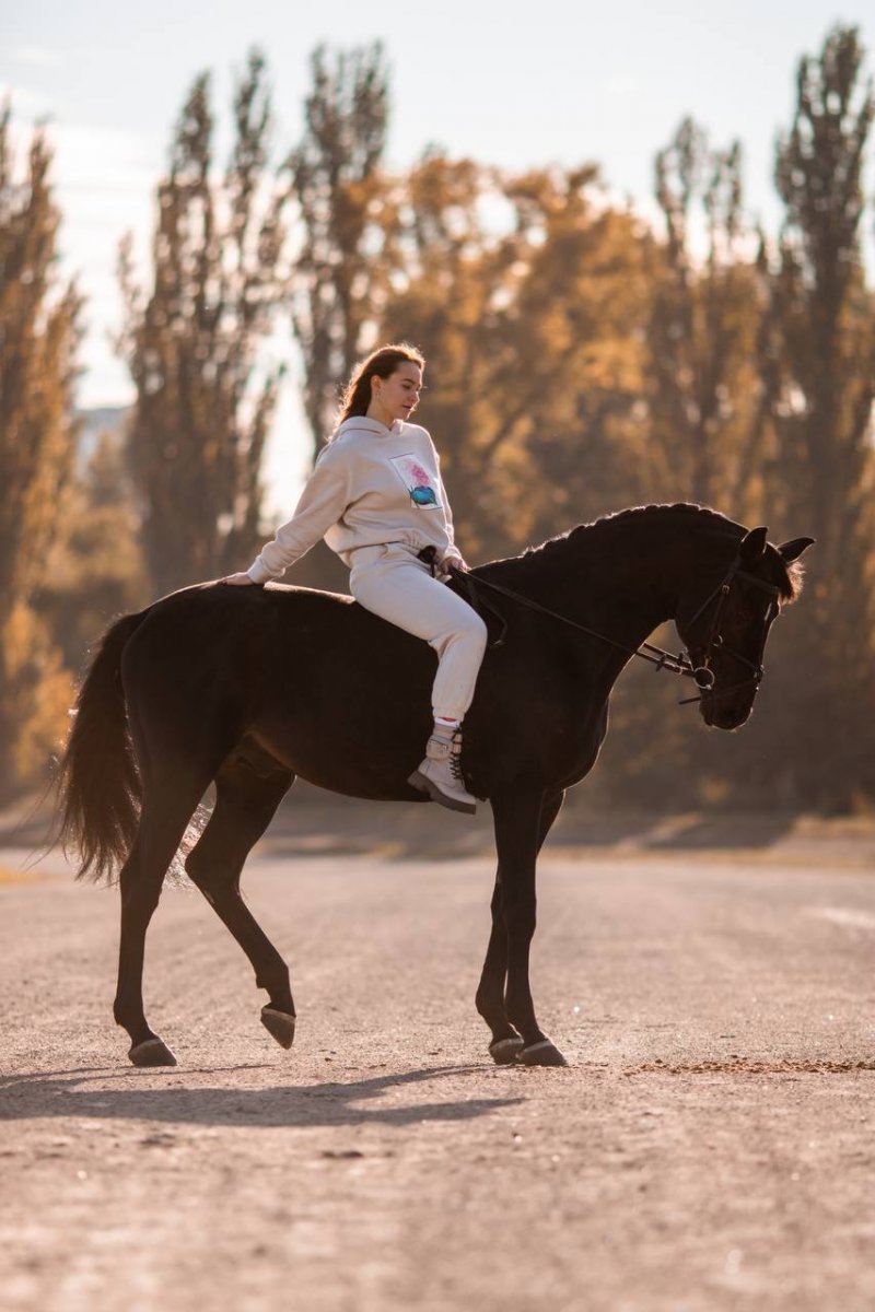 Мягкий прыжок, удобные аллюры. Красивый, спокойный и добрый жеребец, без ярого характера. Не боится ничего, прыгает всё. Все манипуляции без проблем.