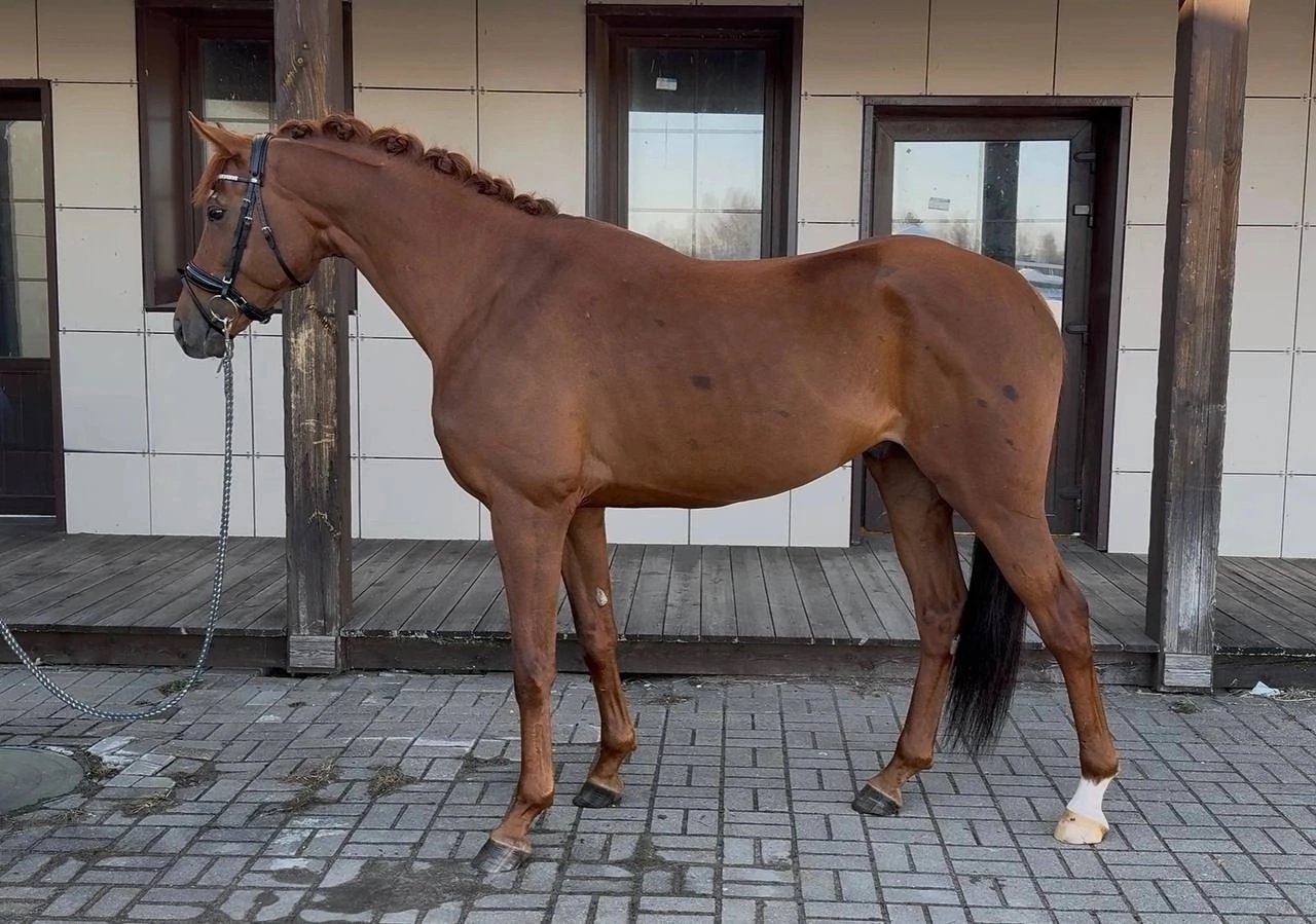 Заезжен, напрыган по одиночным препятствиям до 110 см, шпринт до 145 см. В работе очень думающий, всегда слушает всадника, быстро учится новому.