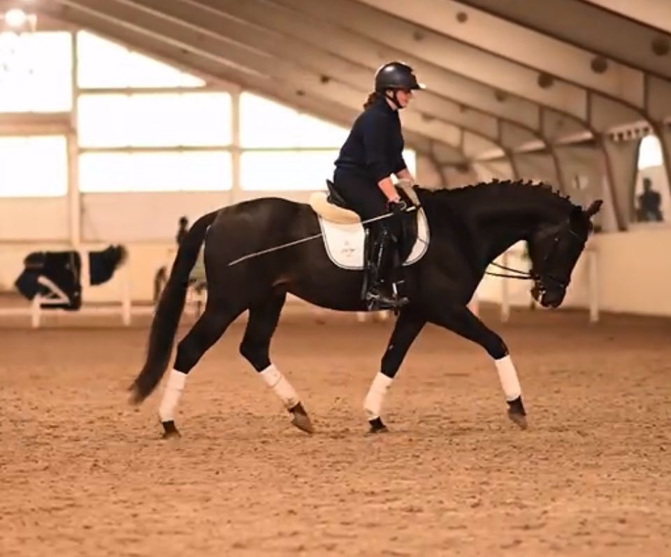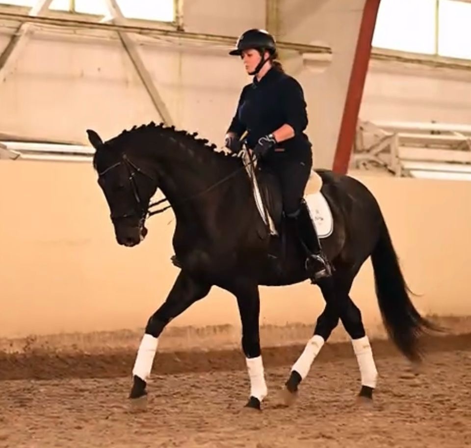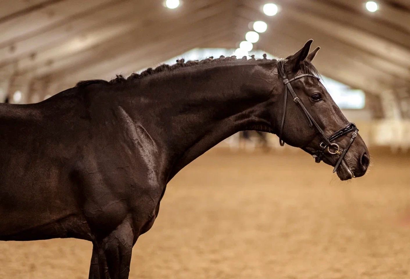 Очень пластичный, с эффектными аллюрами, полностью адекватен и в быту и в манеже, как жеребец себя не проявляет.