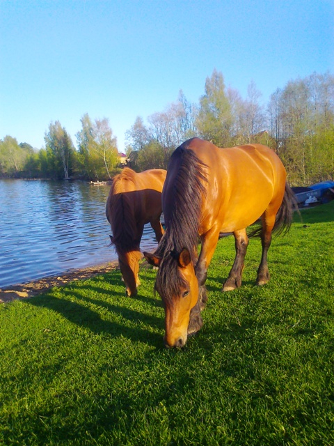 Кузька под верхом очень нервничает - это у него прокатское прошлое сказывается. Мой сосед тогда на работу тренера нанял, которая все косяки, ей же и сделанные, лопатотерапией лечила, понятно, что проблема только усугублялась. Кузька от таких методов сразу паникует и в разнос идет. Тренер всего несколько месяцев там проработала ( сосед ее уволил ), а лошадь испорчена на долгие годы. :evil: Я верхом крайне редко езжу, поэтому и поведение под седлом медленно исправляется, хотя сейчас уже много лучше стало.mmm написал(а):Странно... Кажется, что как-раз Кузька - спокойным должен быть: вы столько времени бок о бок работаете...
