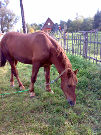 Ну, я ее, естественно, долго не гоняла. Дала понять, что все в порядке, что урок пройден и вернула на прикол. Похоже, кобыла еще долго удивлялась сама себе и если бы около нее было зеркало, то она, непременно, гляделась бы в него, поворачиваясь то одним, то другим боком, приговаривая :" Ай да Алиса! Ай да прелесть! Ну, разве не прелесть эта Алиса?"...