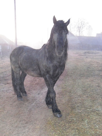 Он путался между ног Барона т.к. был на привязи около дома и пытался цапнуть коня за что-нибудь...