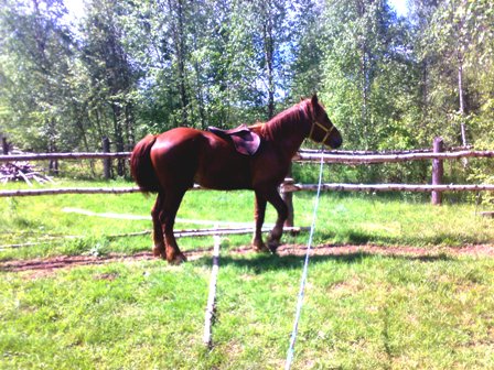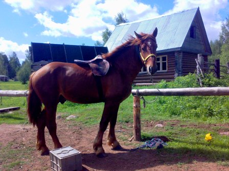 Сегодня же малыш полностью доверился мне и уже не проявлял нервозность или панику. Потому, прозанимавшись с ним минут двадцать, но зато качественно, мы уже с триумфом вернулись и, как взрослые, подойдя к коновязи, сняли седло!