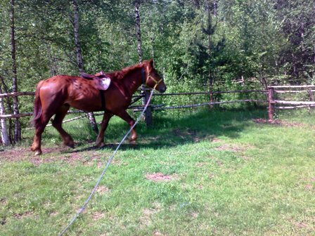 Понятно, что седлать начала, а подпрыгивать у бока, имитируя заскок на спину не пробовала? А так, без седла на секунду не присаживалась?