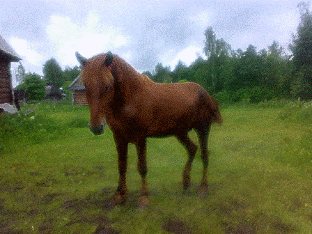 Вторжение лошадей на кухню. Наши туристы все, как один удивляются ... доверчивостью (перевожу: наглостью) всех без исключения животных. Вчера Улан забрался по лестнице в дом к ним, на веранду, сделав ненавистный Любе кранч - растяжку почти в шпагат т.к. надо было задние ноги оставить таки на улице на всякий пожарный!