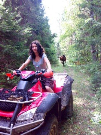 Лошади опять убежали на ночь, но утром, как обычно, они не вернулись. Пришлось седлать верного железного коня - квадрацикл, хватать племяшку и ехать на поиски беглецов. Следы вели в соседнюю деревню, но потом сворачивали в обход и опять уходили в лес. Благо в лесу сухо и квадрик весело и быстро бежал по обычно очень плохим дорогам вперед.