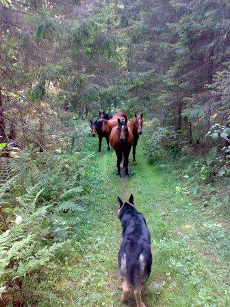 Интересно ... Значит, Вован, Серега - они могли гнать лошадей сзади, как хищники, а за мной они бегут по следам! Получается любопытное наблюдение: лошадки мои ко мне относятся совсем не так, как к остальным людям, скорее всего считая безопаснее пустить меня вперед ...
