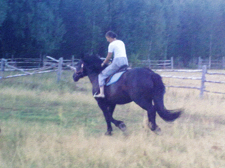 Мой план загона лошадей был прост: заехать им в тыл и погнать по дороге домой. Вован часто употреблял этот очевидный прием. Однако все оказалось не так просто: лошади отказывались бежать впереди, зато пропустив меня вперед весело скакали за мной гуськом так, что подгонять их было не надо!