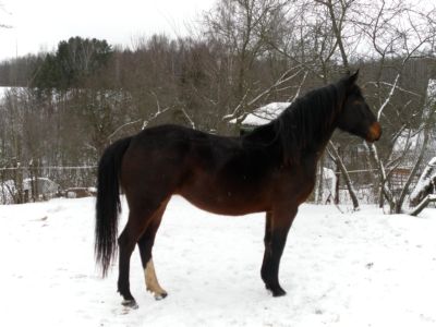 Кузька заезжен под седло,прямо скажем не очень хорошо,есть над чем поработать и заезжен в телегу. Он у меня при хозяйстве первый помощник. Дрова возит из леса,летом сено, в общем без него,как без рук))))