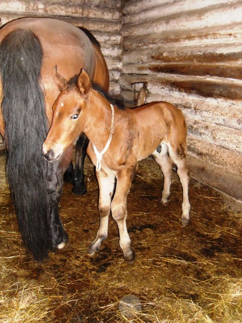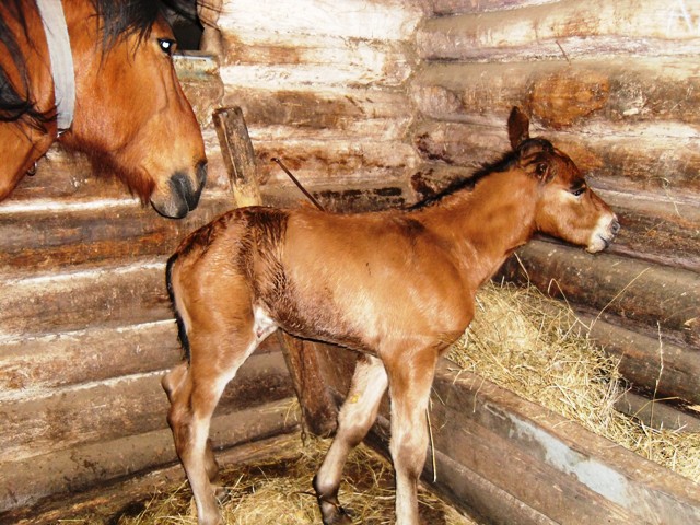 Когда должен был родиться первенец - Шкет, я перестраховалась и вывела Гордого из загона, там он прожил до тех пор, пока Вега перестала агрессивно реагировать на Гордого через забор(это всего дня четыре, наверно). Второго жеребёнка я проморгала и он родился в загоне вместе с остальными лошадьми. Все, канешь, стояли, глазели на младенца, годовалый Шкет вообще дооолго удивлялся этому "нечто", которое появилось не пойми откуда. Вега не нервничала и не прогоняла Шкета от себя, через час ему надоело ходить за ним по пятам и он сам отпочковался от мамки с новорожденным, Гордому вообще было всё фиолетово. Третий родился тоже в загоне вместе со всем табуном, видя реакцию всех лошадей(4 штуки) на ЭТО, я перестала бояться и была уверена, что малыша не тронут, поэтому и не лезла.mmm написал(а):Как остальные реагировали?