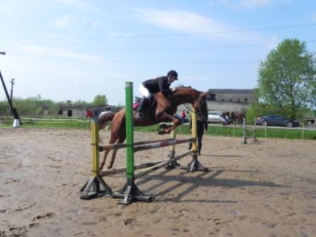 Это фото этого года ,когда мы ездили на конкур в 100 см. Разминка. Там интересно получилось, обычно начинают с конкура в 80 см и только потом 100 см. Из-за погоды сделали наоборот, чтобы грунт не разбить поставили 100 первым, а 80 вторым. Ну и на 100 было 4 штр.о., а вот на 80 см сограничением времени мы опоздали на одну сотую секунды, были огорчены даже судьи, так как по сути это было лучшее время.