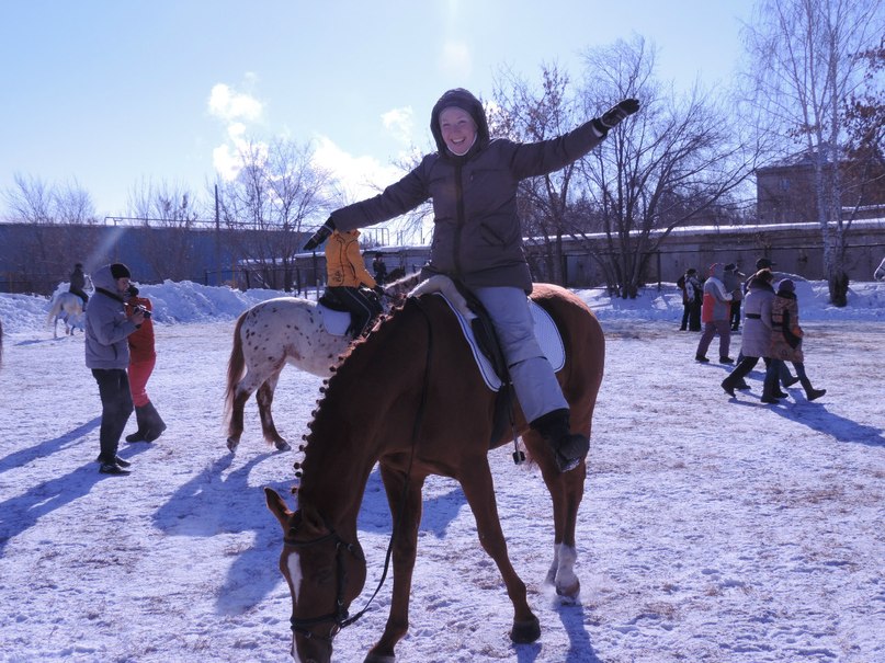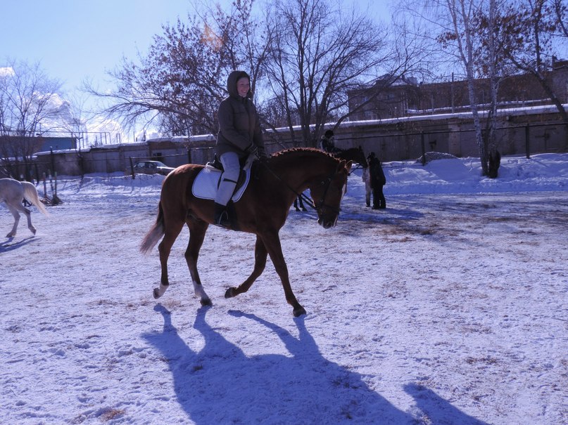 А в общем и целом, положительно лошадь умна, местами хитра, очень контактна. Особенно к людям. К лошадям пока интереса особого не проявляет. Хорошо прыгает. Есть перспективы, нам говорят. Возможно, летом допрыгаемся до системы.