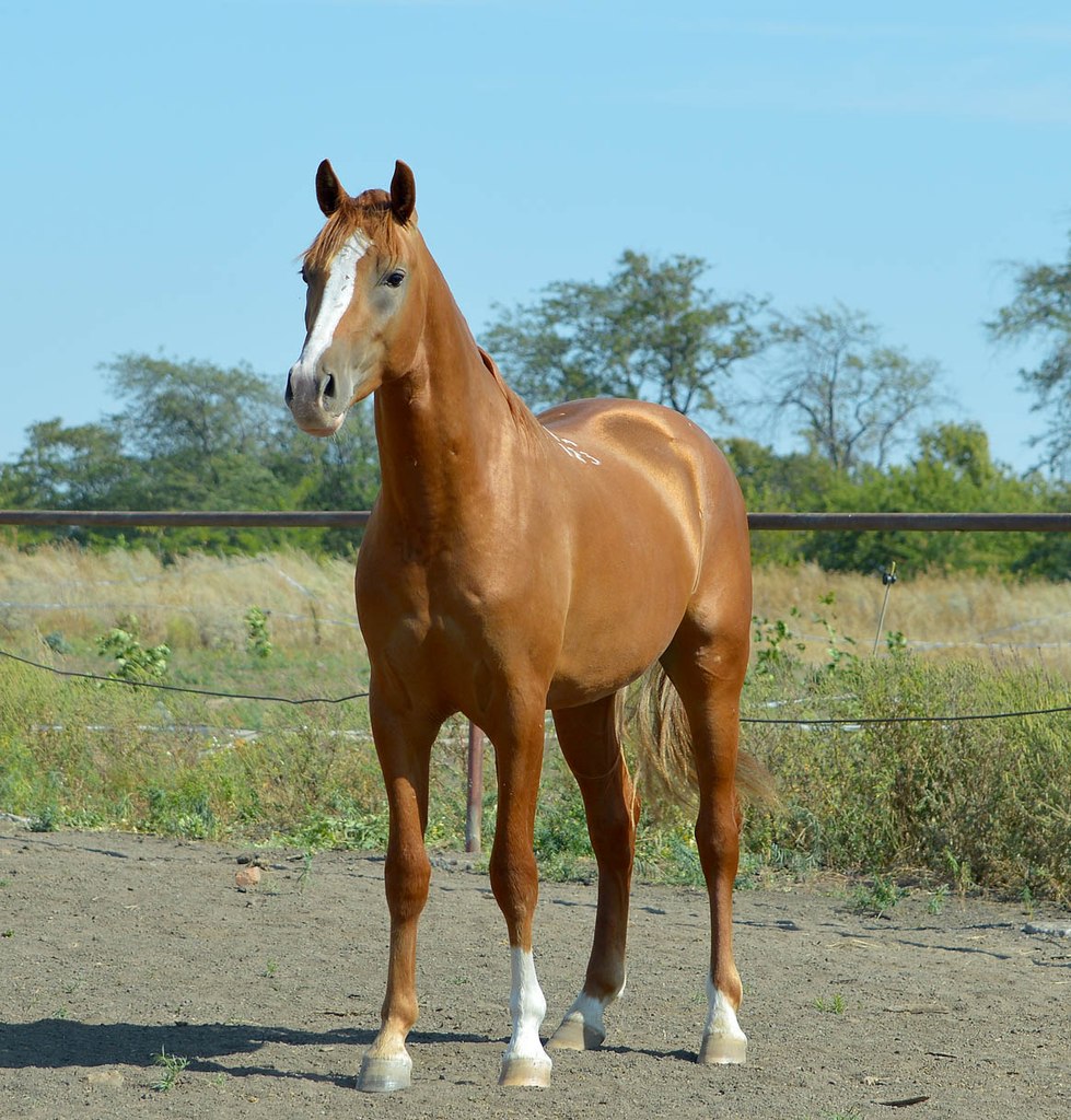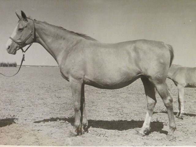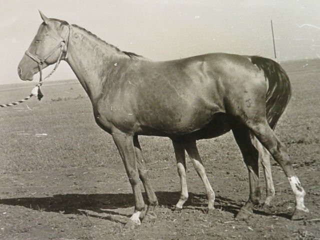 кобыла чистопородная, т.е. не имеет кровности по ч/в и ар. породам. Этой лошади 18 лет, от нее получено 13 донских жеребят.