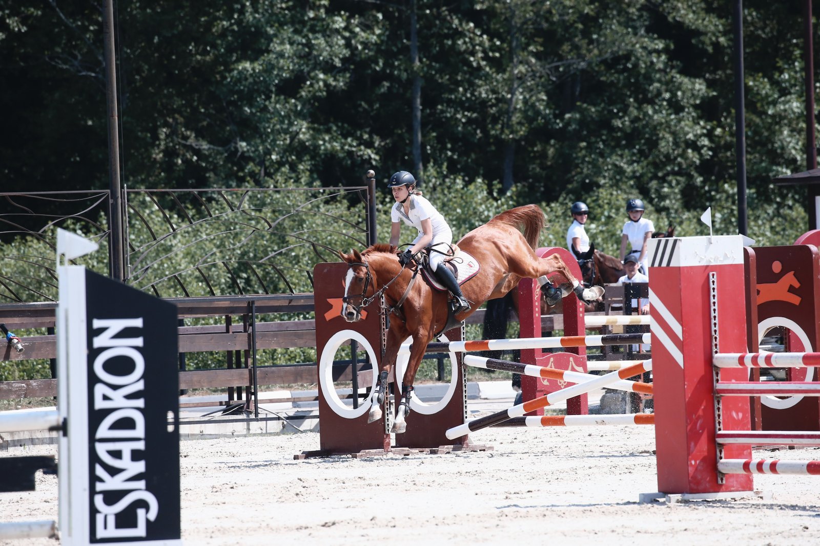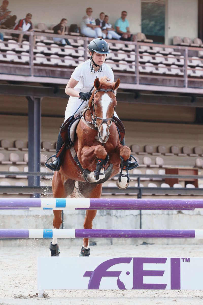 Конь молодой, в работе у берейтора Полины Лебедевой всего год, и вот результат — плавно, не форсируя, и не пугая, подвели коня к разрядной высоте.
