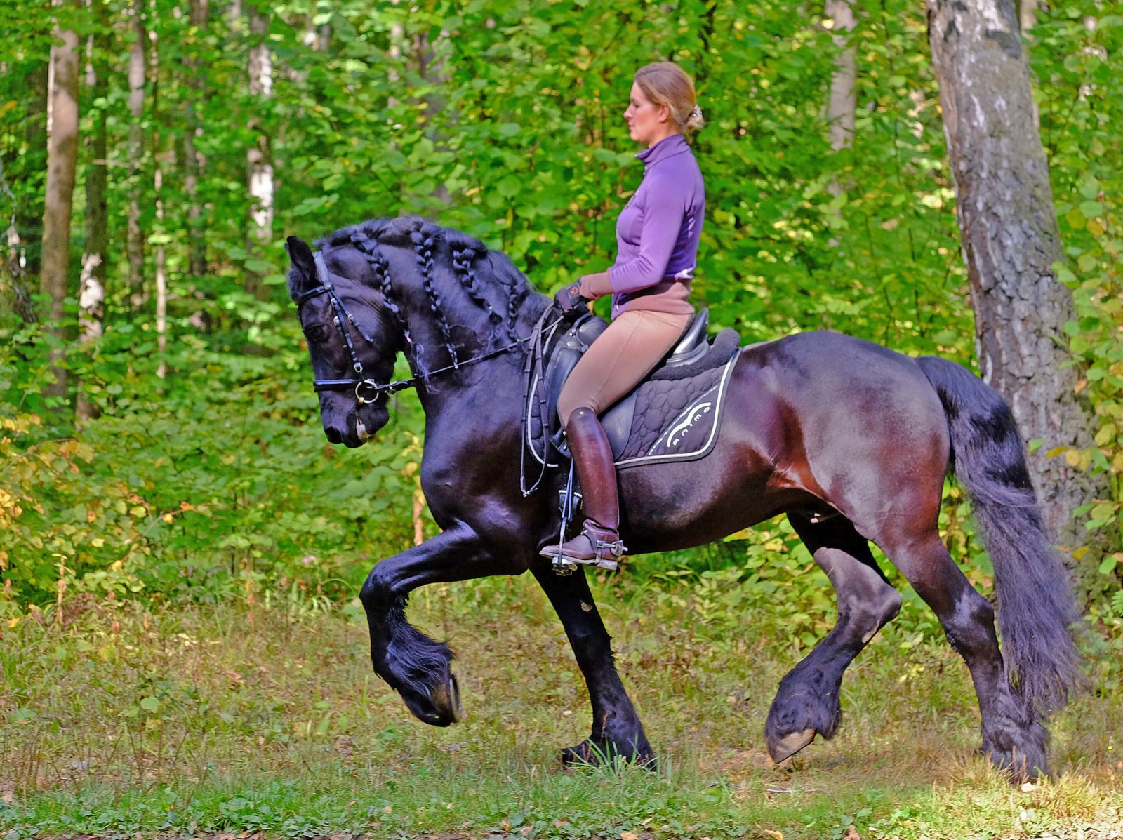 Но заплетают не так, как ты кобылу. Плетут одну косу по гребню, добавляя прядки по мере заплетания. И уже внизу гривы получается косичка ,идущая вниз. Которая и крепится резинкой. Фризы так и живут , с заплетённой гривой. Проще ухаживать.