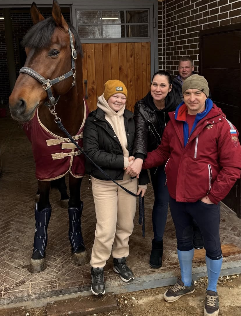 Жеребец продолжит свою спортивную карьеру под седлом Екатерины Корсаковой — спортсменки из Ленинградской области, которая выступает на маршрутах с препятствиями высотой до 130 см. В этом году девушке исполнится 17 лет. Вместе с Априори всадница сможет добиться новых вершин и выйти на новый уровень в спортивной карьере.