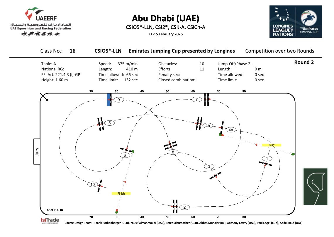 Франк Ротенбергер, также работавший на турнире в Абу-Даби в качестве курс-дизайнера, предложил всадникам дистанцию второго гита с десятью препятствиями вместо девяти.