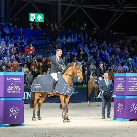 В рамках турнира Jumping Amsterdam прошла торжественная церемония прощания с боевым партнером Марка Хаутзагера (Нидерланды) — 18-летней кобылой Sterrehof’s Dante.