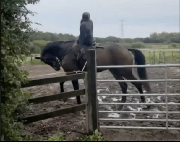В Великобритании начали расследование жестокого обращения с животными после того, как в интернете появилось видео с лошадью, принадлежащей судье и организатору турниров — Питеру Ходжкинсону. На снятом материале запечатлена поседланная лошадь в леваде с закрепленным манекеном всадника на спине.